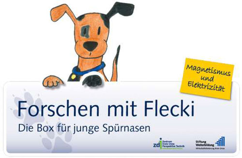 Bei einer Grundschulaktion, bei der es sechs Forscherpakete mit Lehrkräftefortbildun-gen zu gewinnen gab, haben sich 41 Grundschulen (von 65) aus dem Kreisgebiet beteiligt. Leider konnten nur 6 Schulen mit dem Paket ausgestattet werden. Wegen des enormen Interesses haben wir uns dafür eingesetzt, allen Grundschulen im Kreis ein entsprechendes Angebot zu ermöglichen. So wurde unter unserer Federführung, gemeinsam mit regionalen Unternehmen, die Know-How und Materialspenden eingebracht haben, ein „Forscherpaket“ zum Thema Magnetismus und Elektrizität  entwickelt. Flecki war geboren!